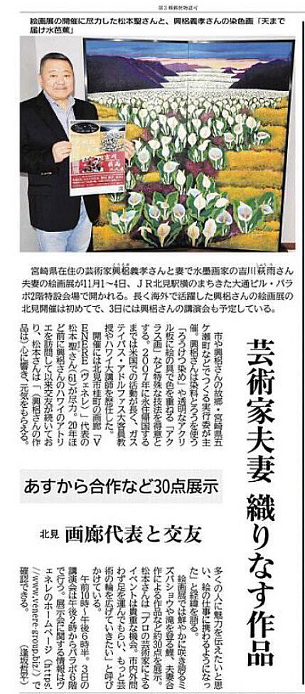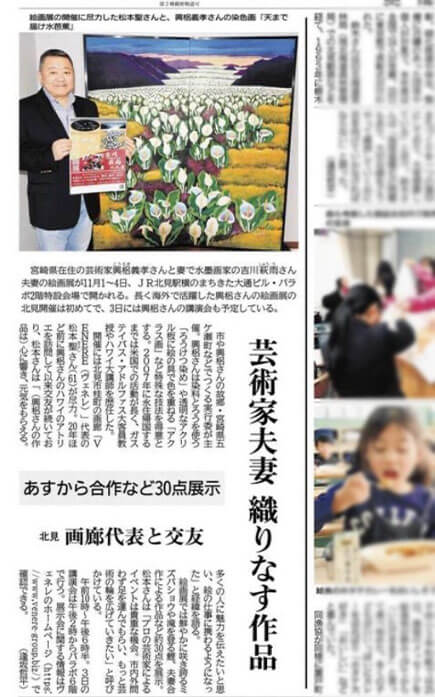 興梠 義孝は、布地にろうを塗ってから染める「ろうけつ染め」という